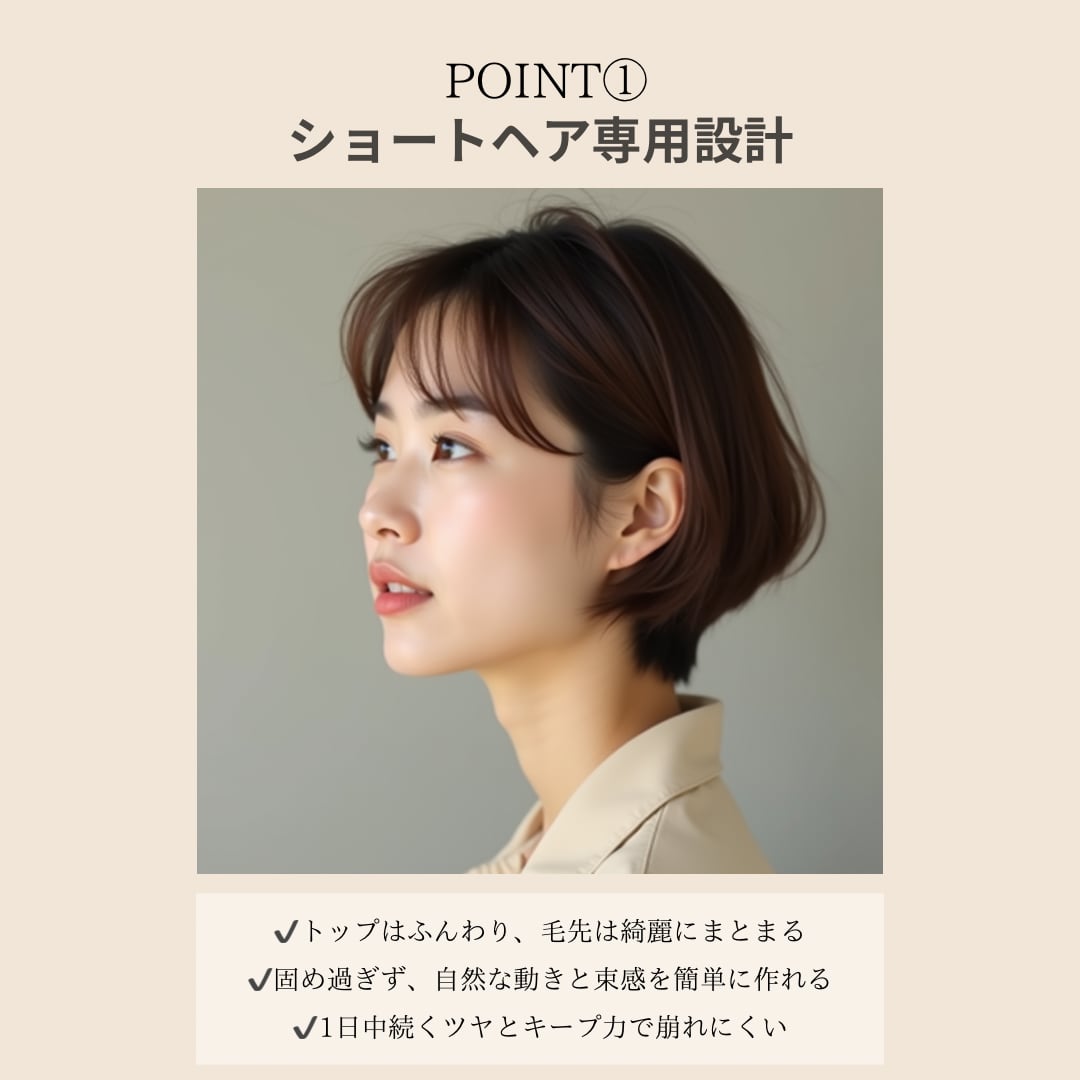 ハリ・コシを与え、ショートヘアの立体感を支えます。