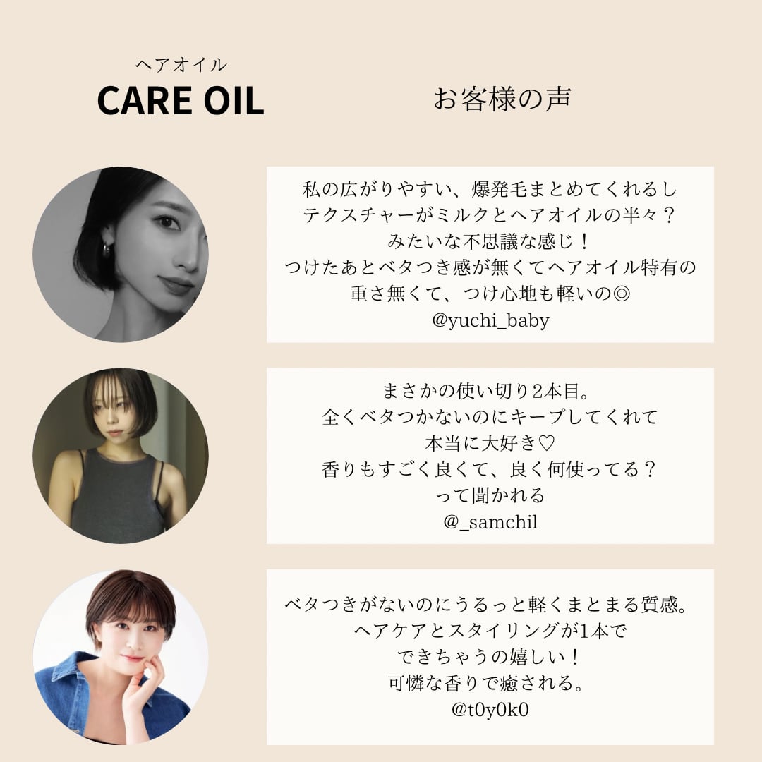 【CARE OIL】は、ドライ前・アイロン前・仕上げまで対応。